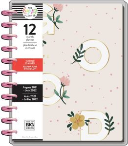 First of all, I love a pretty color scheme. The Happy Planner teachers edition has some beautiful and fun covers that will excite you to open up your planner and write. This Happy Planner has a weekly spread, monthly layout, and a classroom checklist (which looks like a grade book to me). There is enough space for you to add planner stickers and personal notes throughout the planner pages.